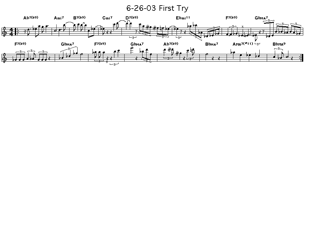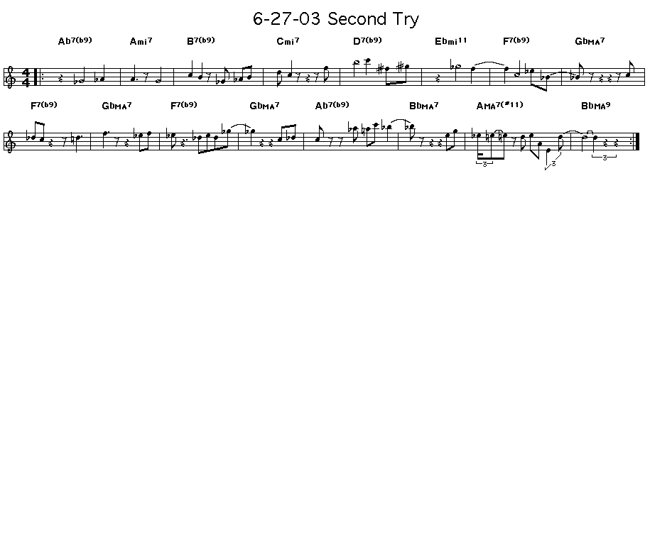 | I found the chord progression for this the morning of 7/19/02 while waiting to depart our hotel in Colorado Springs. Completed the tune as we drove to Boulder later that morning.