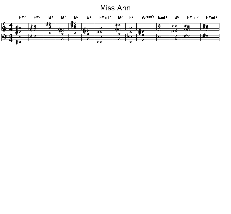 Chord progression for Eric Dolphy's Miss Ann. This tune has an unusual 14-bar form.