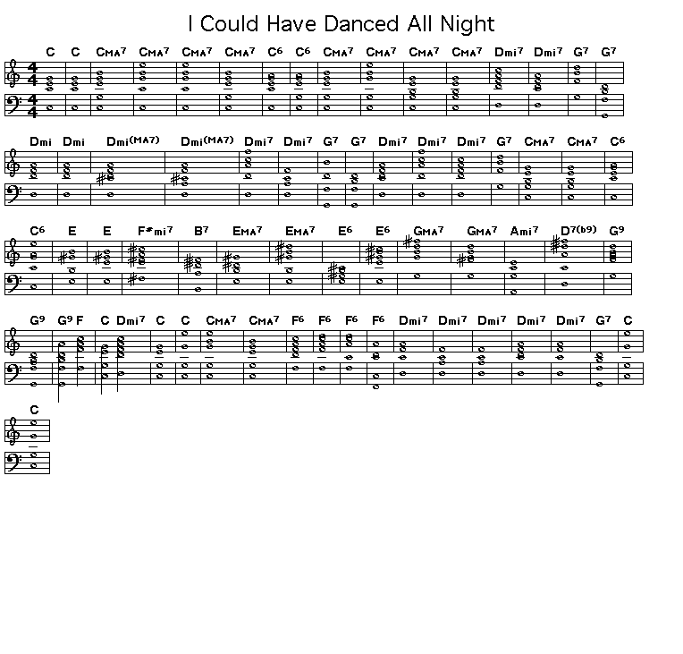 Chord changes from Frederick Loewe's I Could Have Danced All Night written for the musical "My Fair Lady".