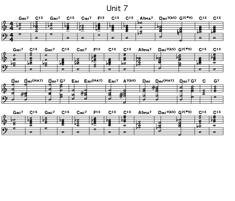 Chord changes for Sam Jones' Unit 7. This was first played by Cannonball Adderly's band which used it as a set closer. Wes Montgomery also did wonderful versions of this.