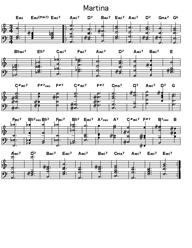 Chord changes for Michel Legrand's Martina. Bill Evans did a wonderful performance of this with Harold Land, Ray Brown, Philly Joe Jones and Kenny Burrell on his album "Quintessence".
