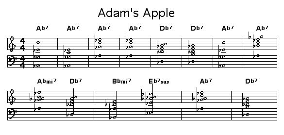 Changes for Adam's Apple, the title tune from Wayne Shorter's album on Blue Note Records. This tune is a blues, whose last 4 bars have been altered in an interesting way.