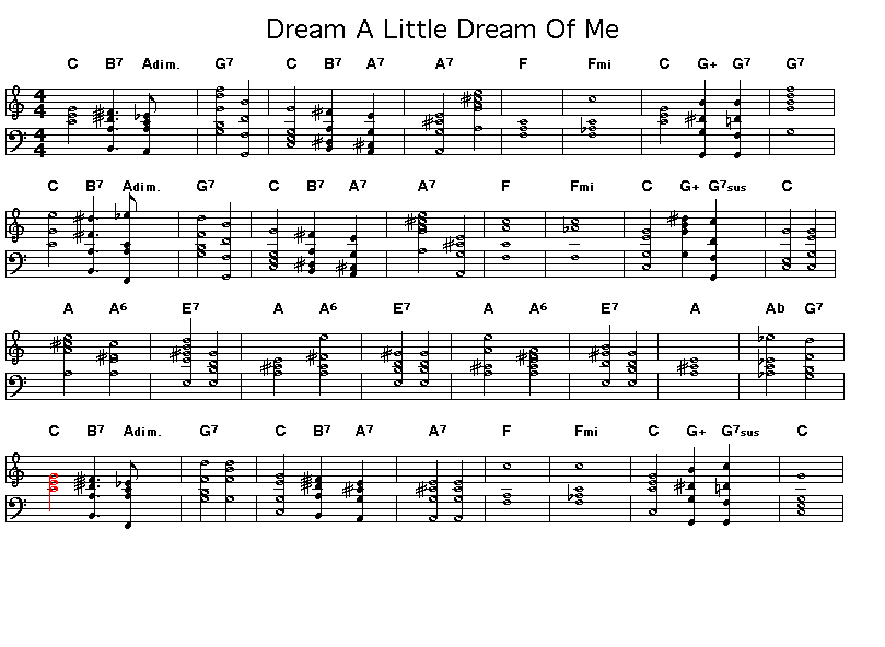 Chord changes for Gus Khan's "Dream A Little Dream Of Me". This was a big hit for the Mamas and the Poppas in the mid 1960s although it was composed in the 1930s.