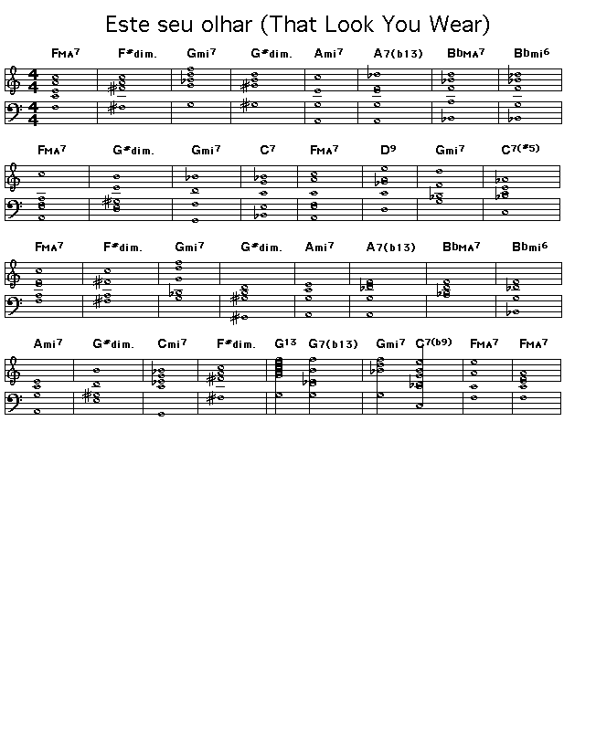 Chord changes for Jobim's "Este seu olhar". It's title in English is "That Look You Wear".