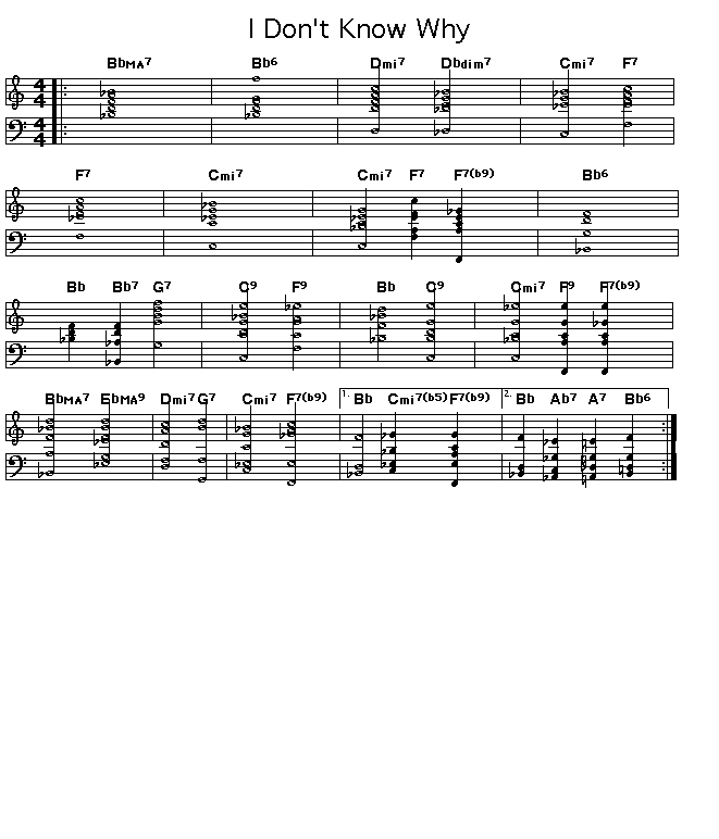 Chord changes for Fred Ahlert's I Don't Know Why.