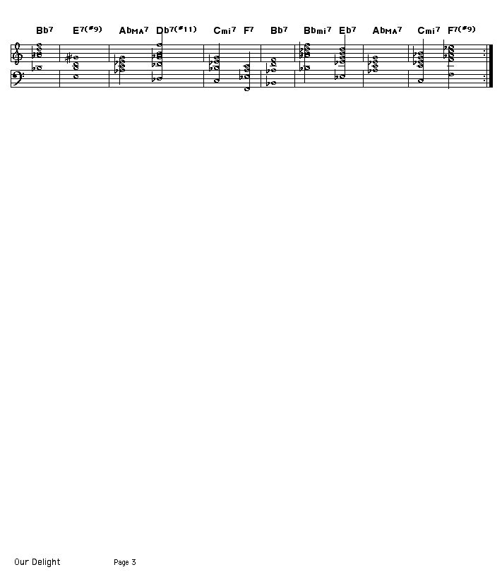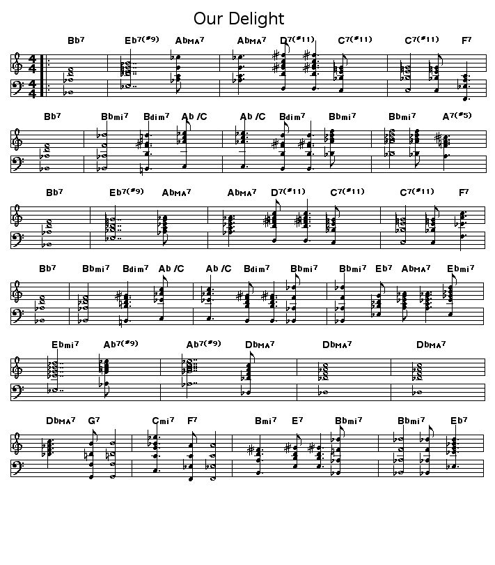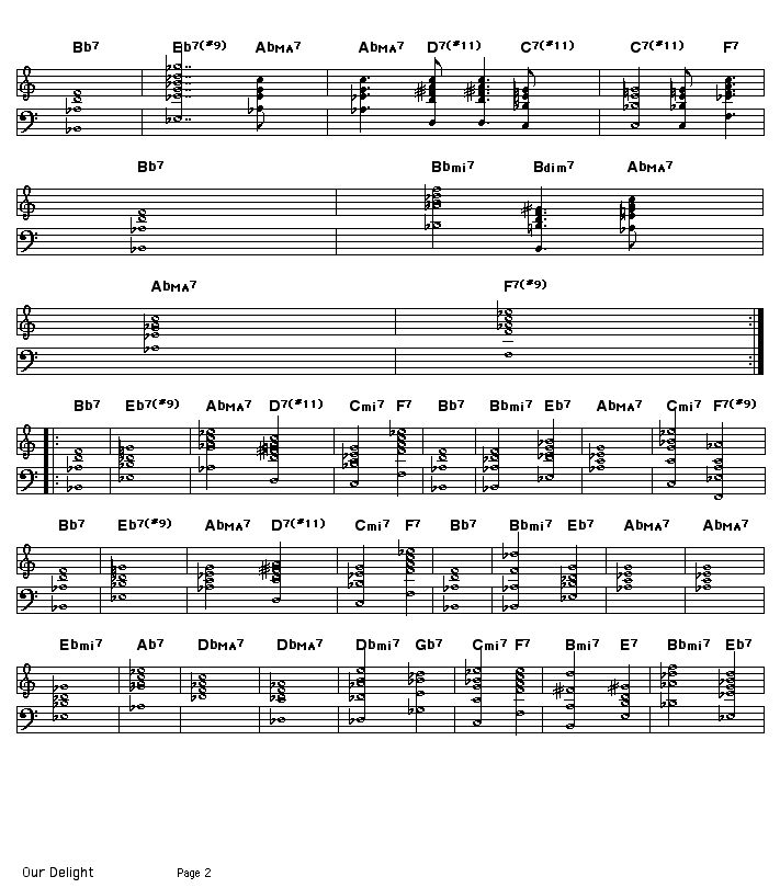 In this MIDI arrangement, the first two 32-bar choruses play the changes that accompany the melody of the tune, and the remaining 8 choruses play the changes that accompany solos.