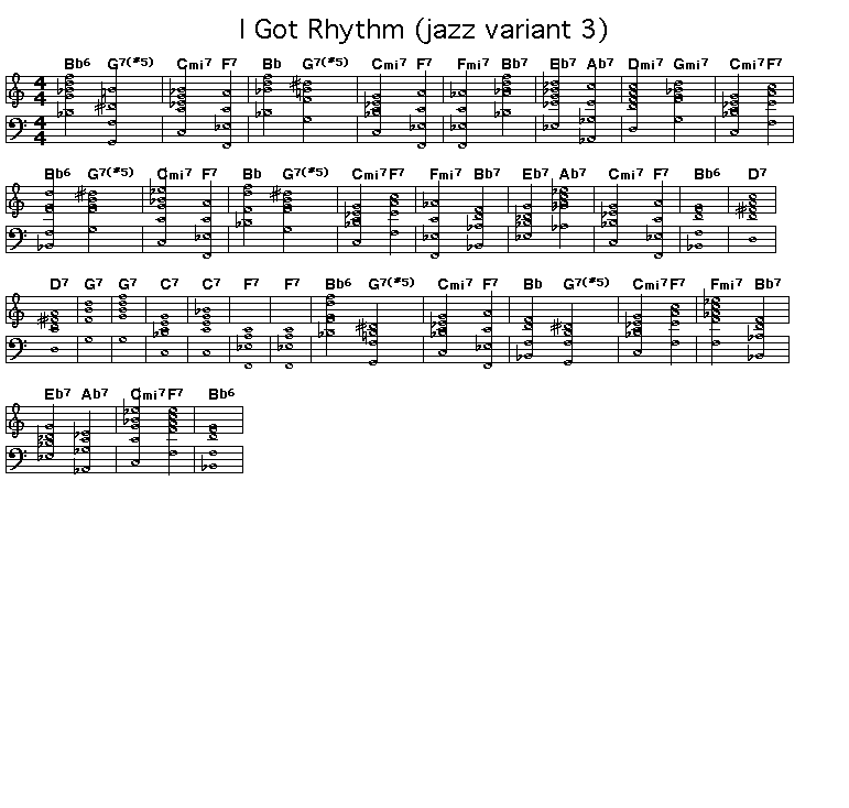 This is a version of the jazz changes for I Got Rhythm that substitutes a more active G7#5 for the G7 chord that is ferquently played as the second chord of the intial four chord cycle of the A section. This cycle is repeated twice. The G7 is altered in both repetitions..