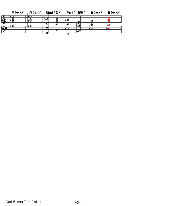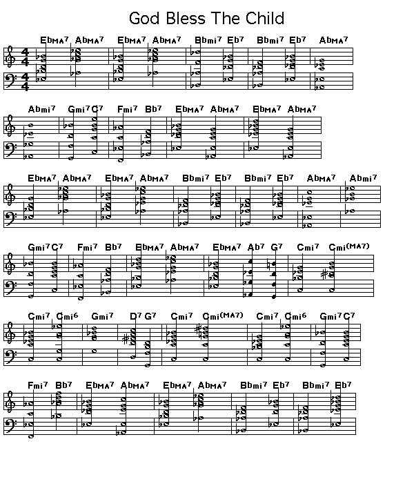 Chord progression for Arthur Herzog's God Bless The Child. This tune was made famous by Billie Holiday who wrote the lyrics for it. Sonny Rollins did a wonderful version of this on his album "The Bridge"..