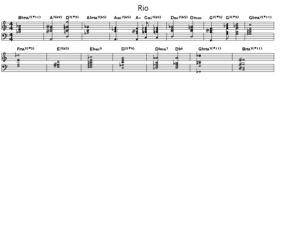 Chord changes for Wayne Shorter's Rio. This mysterious sounding tune with a 14 bar form was first performed on Lee Morgan's album "The Procrastinator".
