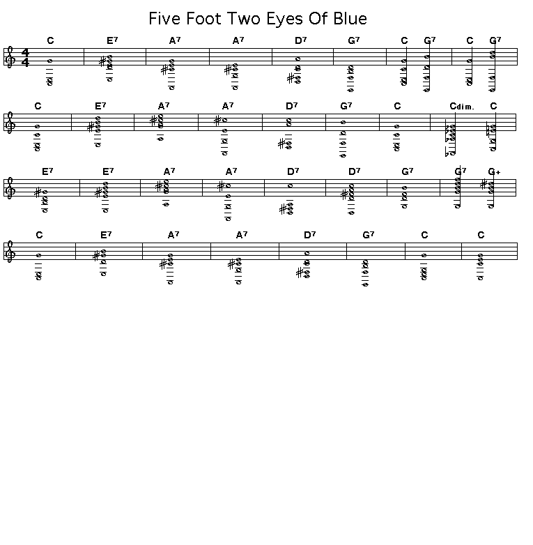 Chord progression for Ray Henderson's Five Foot Two, Eyes Of Blue, which was first recorded in 1925. Charlie Parker loved to quote the melody of first phrase of the tune's chorus during his solos. In live performance he was very likely to use the phrase when a pretty girl walked into the joint.
