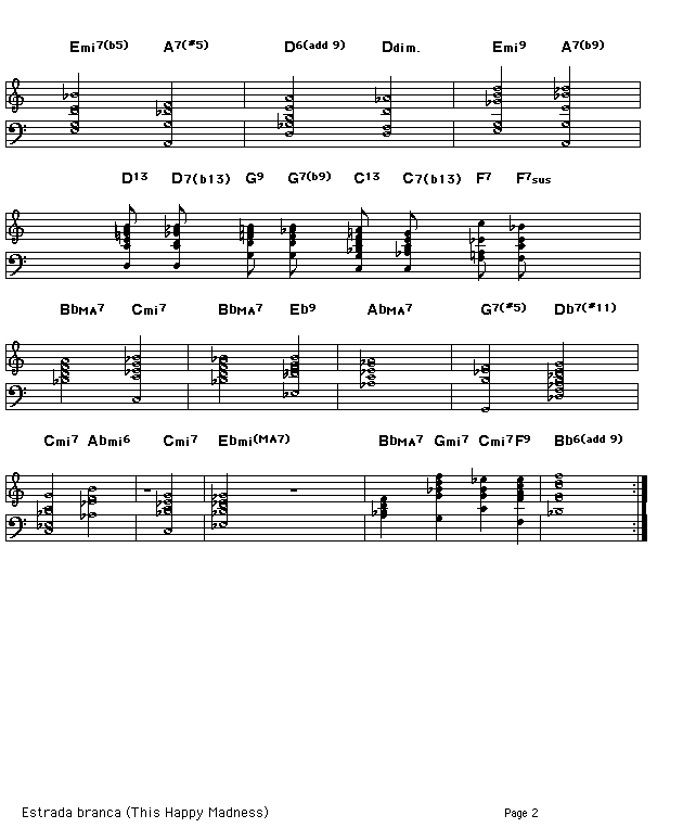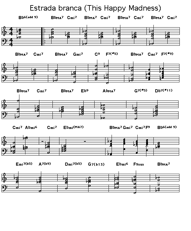 Chord changes for Antonio Carlos Jobim's "Estrada branca".